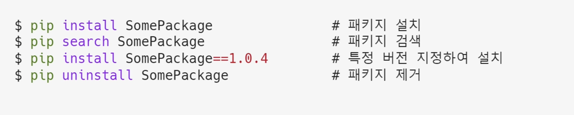 내가 다운 받은 패키지들을 관리하는 것을 pip라고 한다.