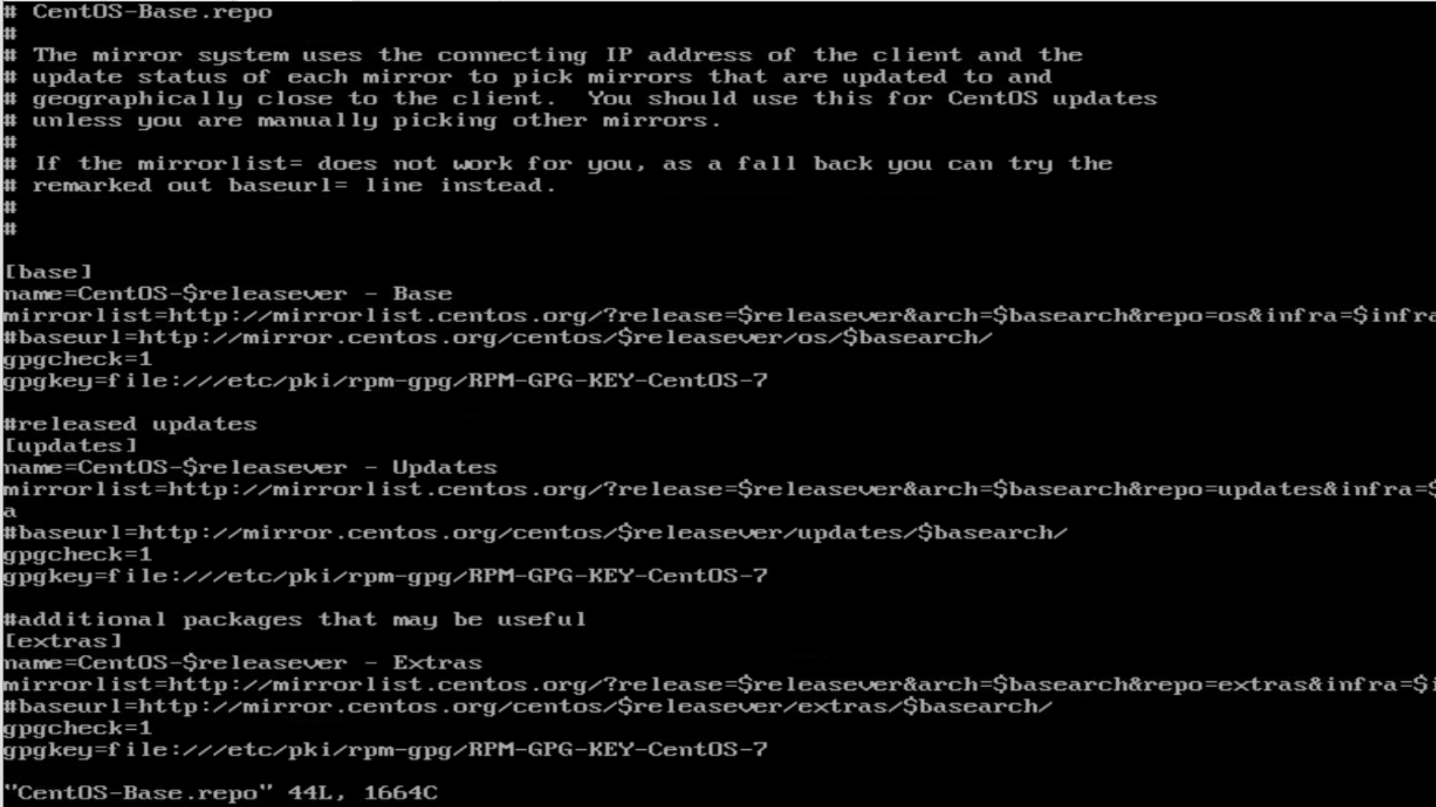 vi CentOS-Base.repo를 하게되면 아래와 같은 화면이 보이게 된다.