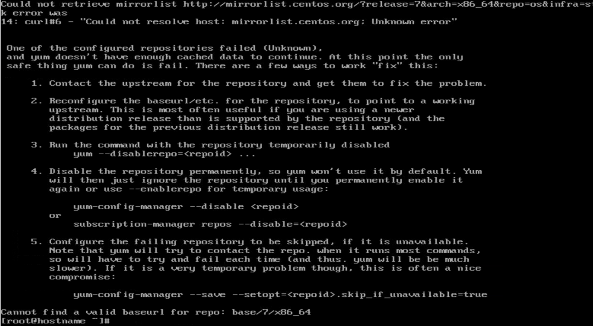 그러면 네트워크 문제는 아녔을 것이다. 그러면 yum에서 mirror 즉, 파일 다운주소가 참고되어 설치되는 주소값이 잘못된 것이다.
