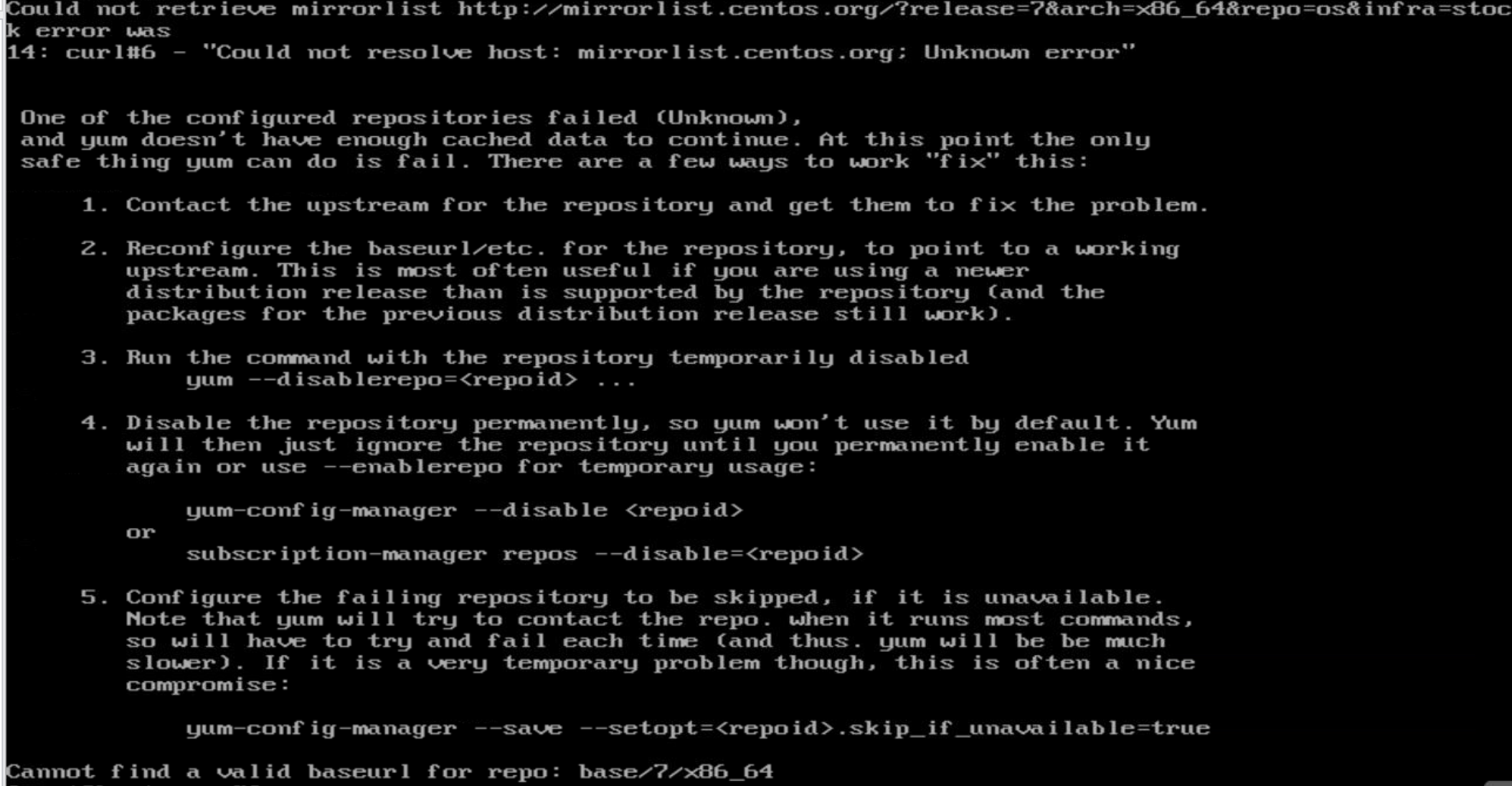 mirrorlist = 어쩌구 저쩌구 이 줄 삭제해주시면 됩니다.