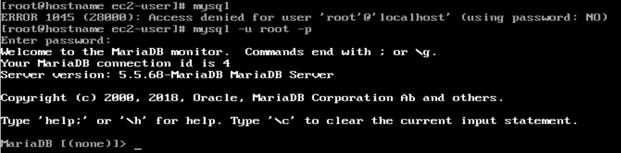 mariaDB를 다시 실행해보려 mysql을 쳤는데, 아까처럼 들어가지진 않는다. 보면, root를 통해서 들어가라고 한다..