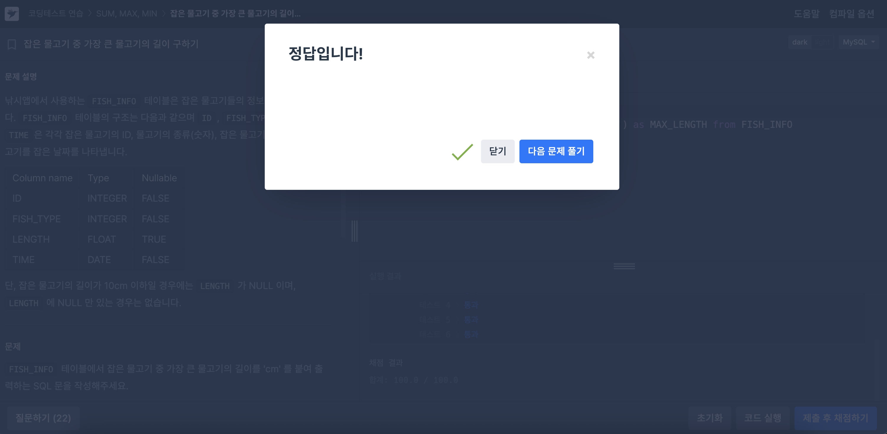 예를 들어 FISH_INFO 테이블이 다음과 같다면