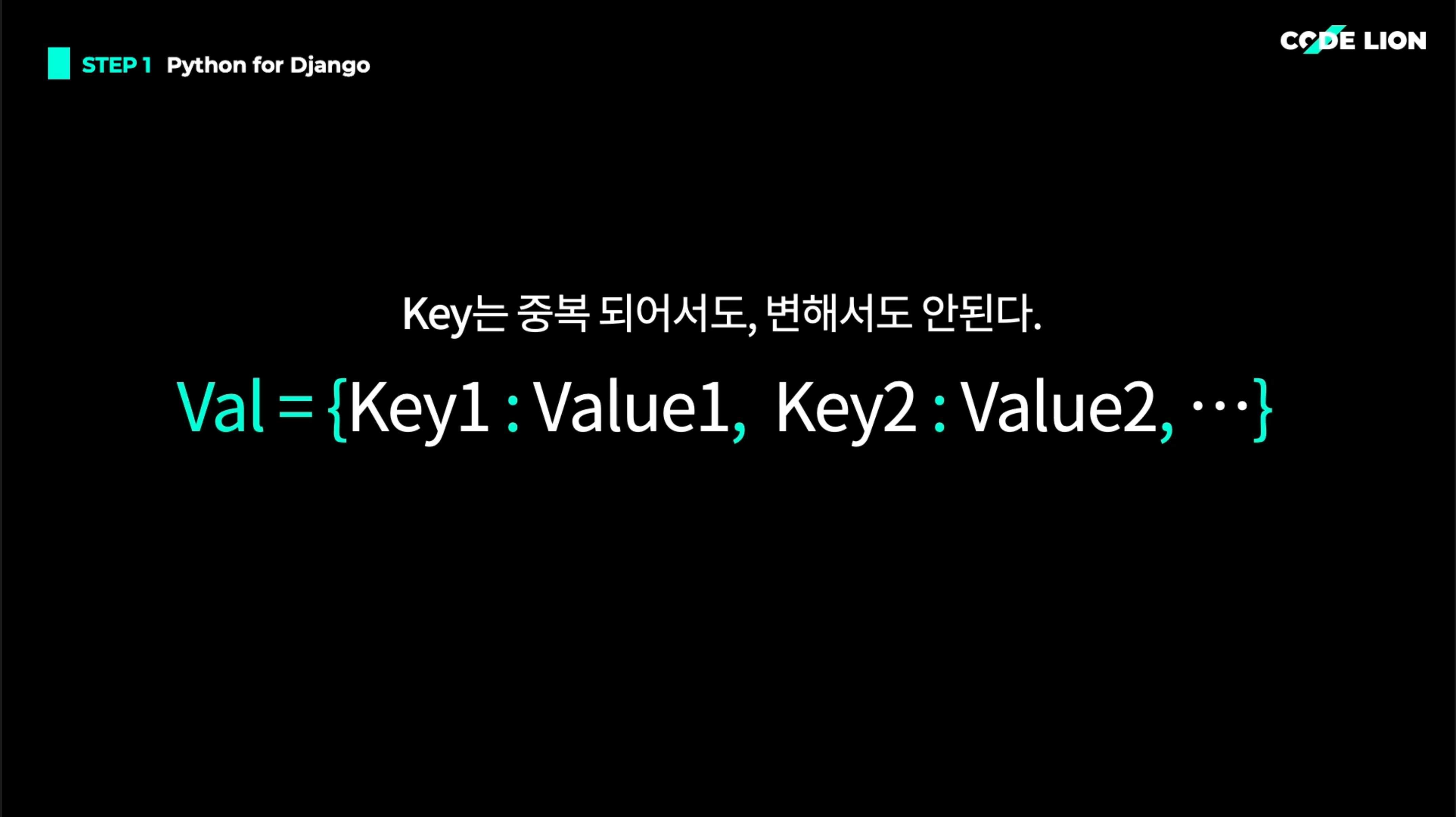 print(Val[Key1]) #출력은 Value1의 값이 출력된다.